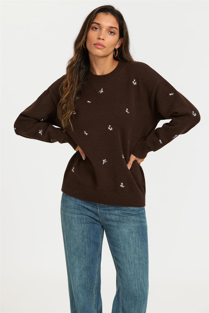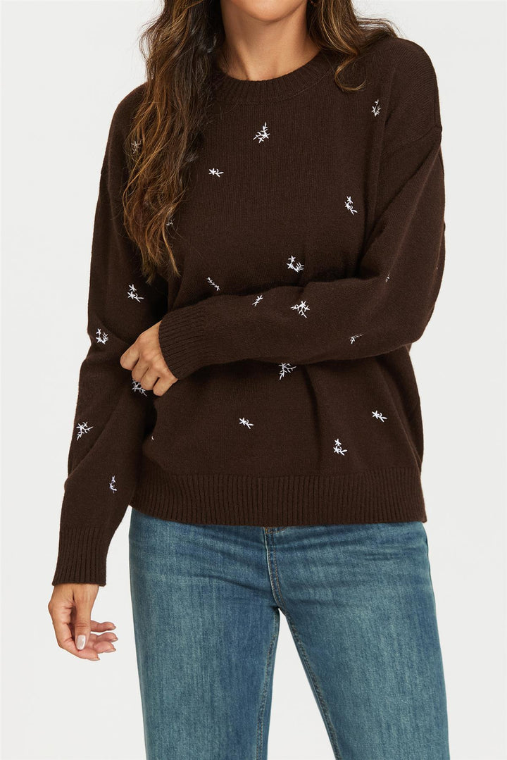 Add a charming touch to your cold-weather wardrobe with this Embroidered Floral Knit Jumper. Crafted from a soft, mid-weight knit, this sweater features delicate floral embroidery scattered across the front and sleeves for a feminine twist on a casual essential. Designed with a relaxed fit, ribbed cuffs and hem, and a classic crew neckline, it offers both comfort and style. Pair it effortlessly with jeans or tailored trousers for a cosy, elevated everyday look.