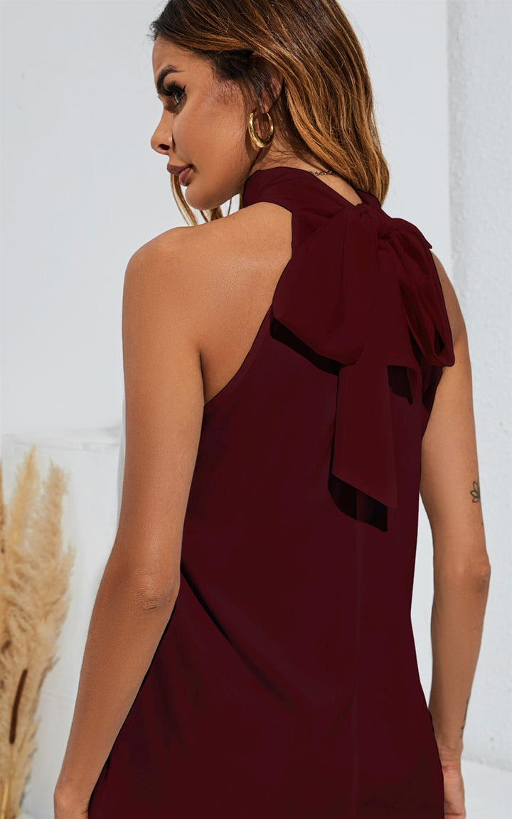 Neckholder-Oberteil mit Binderücken in Burgunderrot