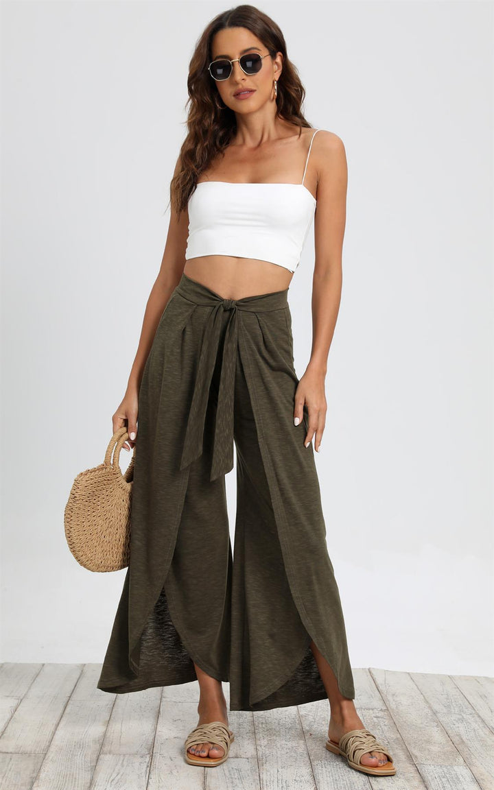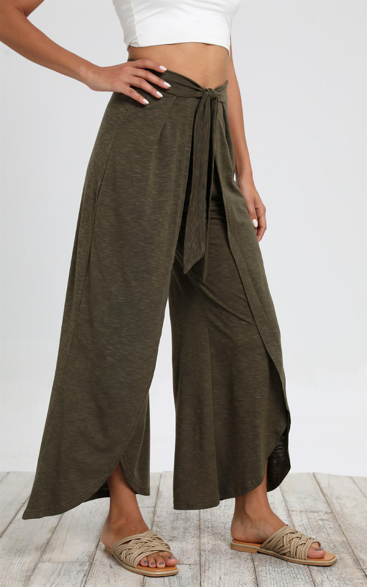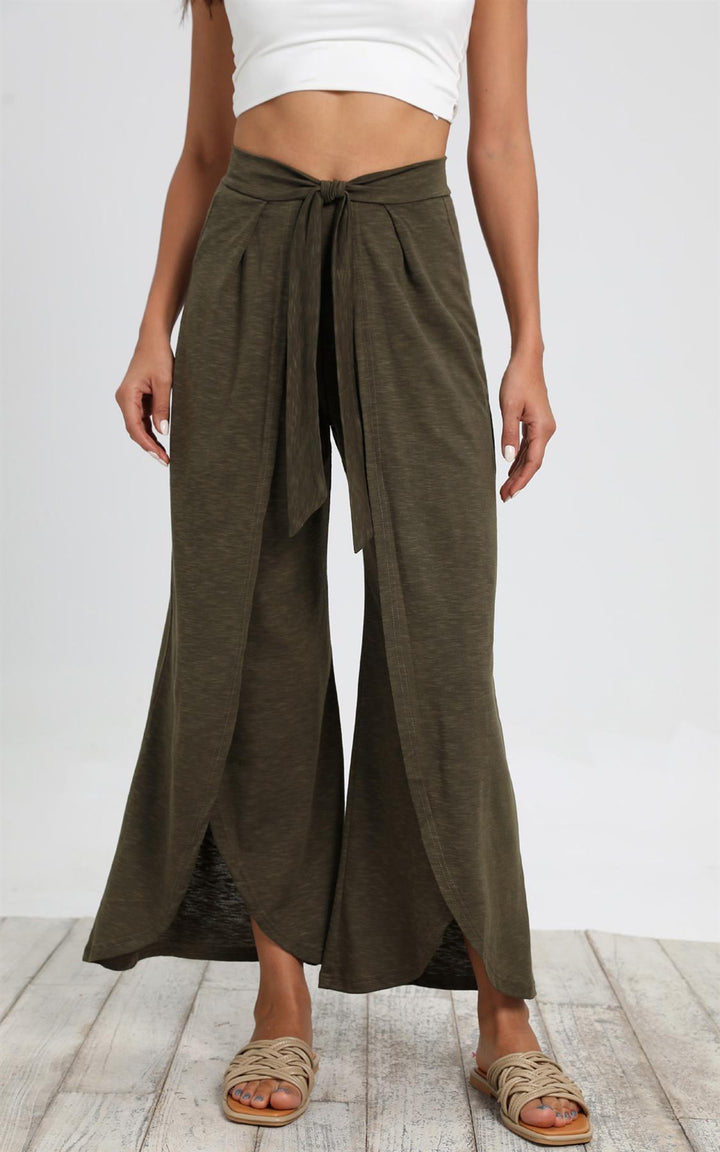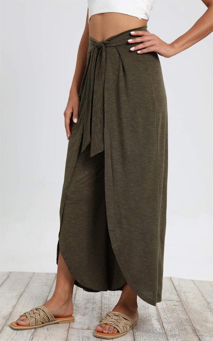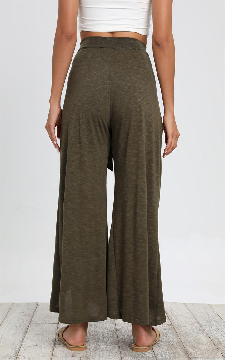 Wide Leg Tie Wrap Waist Trouser In Olive